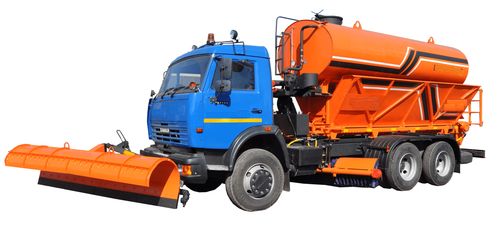 Решение на базе грейдера с двумя плугами для чистки снега, например, на обочине и дорожном полотне. Производственное задание контролируется по:
