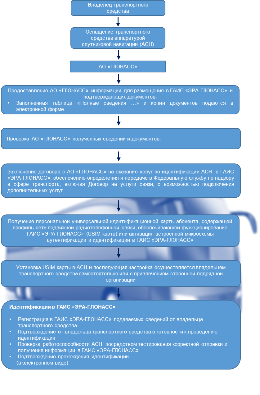 Установить SIM-карту (если ранее не была установлена) в аппаратуру спутниковой навигации и провести настройку согласно инструкции****. После получения от аппаратуры спутниковой навигации данных о местоположении транспортного средства будет сформировано свидетельство об идентификации в ГАИС «ЭРА-ГЛОНАСС» в электронном виде и направлено собственнику (владельцу) транспортного средства на адрес электронной почты, указанный в договоре