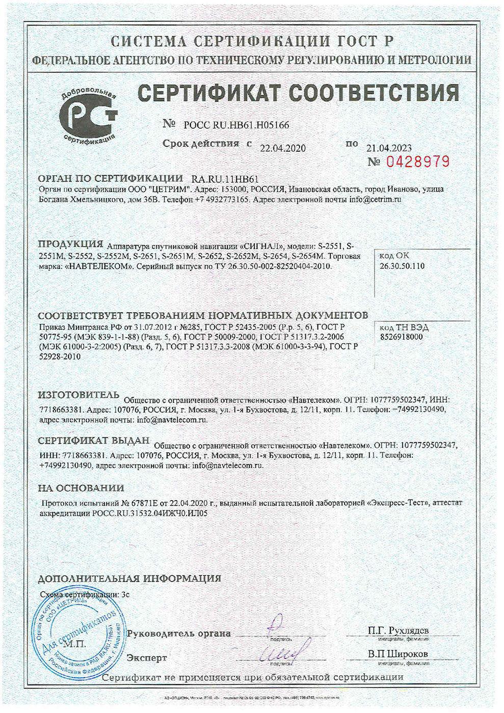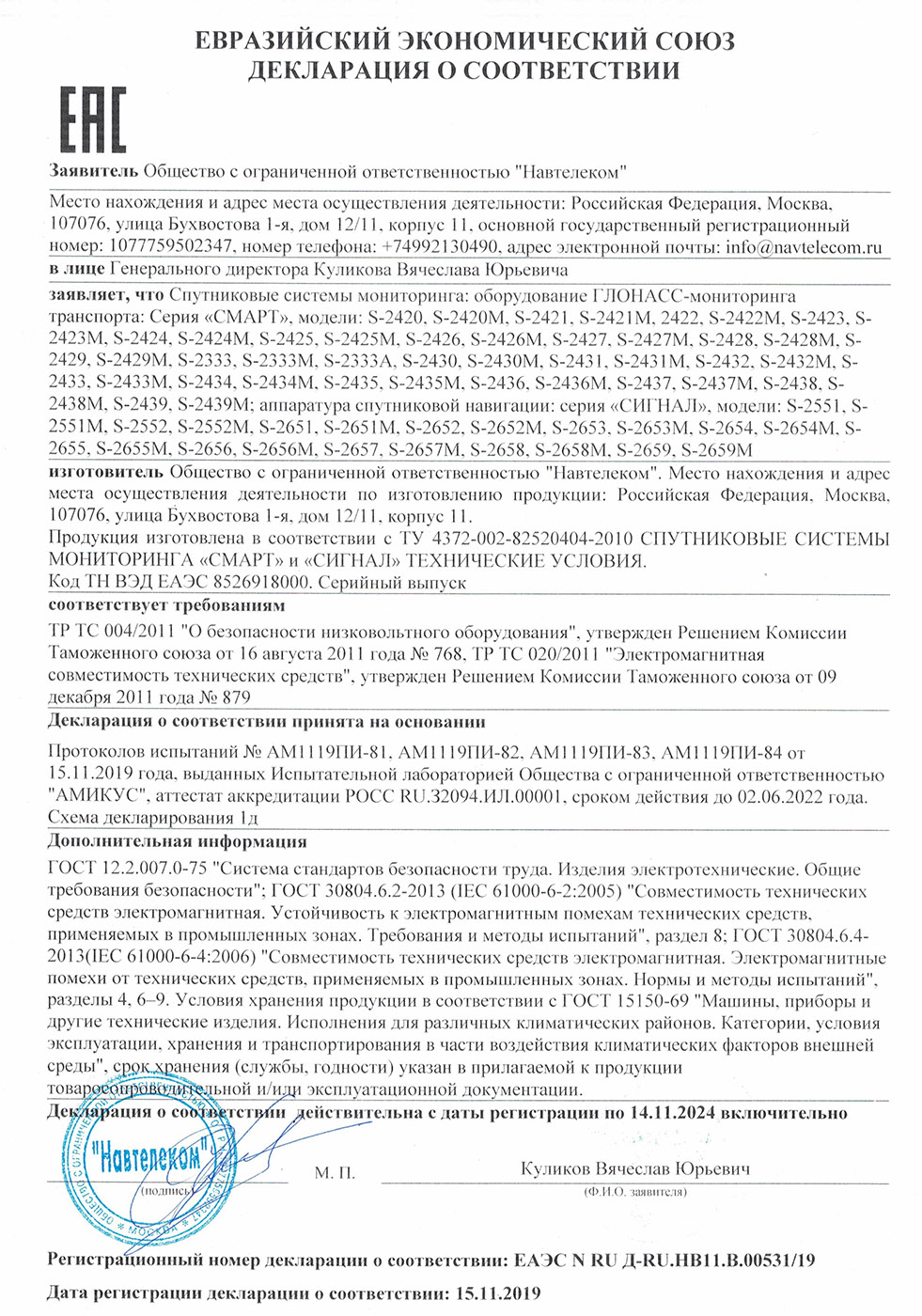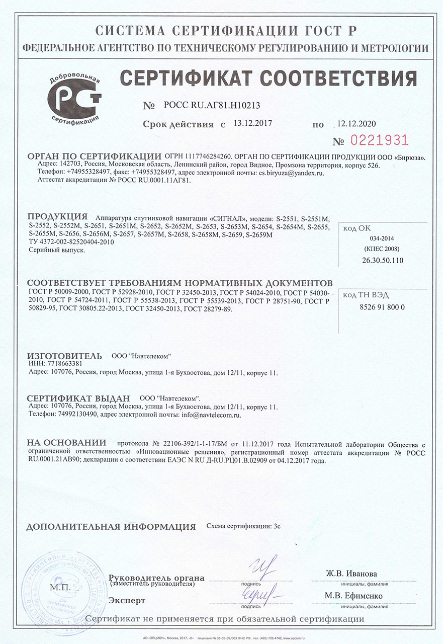 Время сохранения хода часов RTC и эфемерид в навигационном модуле, (при отключенном питании и разряде встроенной АКБ) не менее, суток 5